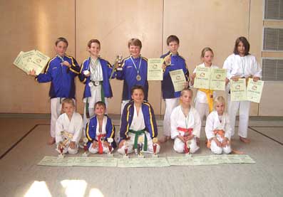 5. Platz im Vorderfeld landeten Karsten Hollmann und Maximilian Holland im Kata Einzel Kinder, Nicolas Lindner im freien Kampf Kinder bis 30 kg und Thomas Semm im freien Kampf Jugend - 55 kg und Lisa